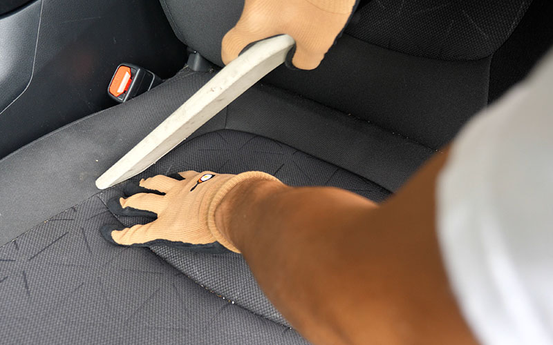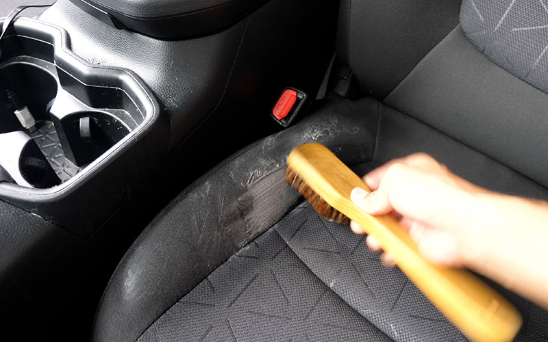 細かいところは刷毛とかを使ってもいいと思います。シートに少しシミがあるんですが、ここはあとでリンサーを使おうかなと思っています。