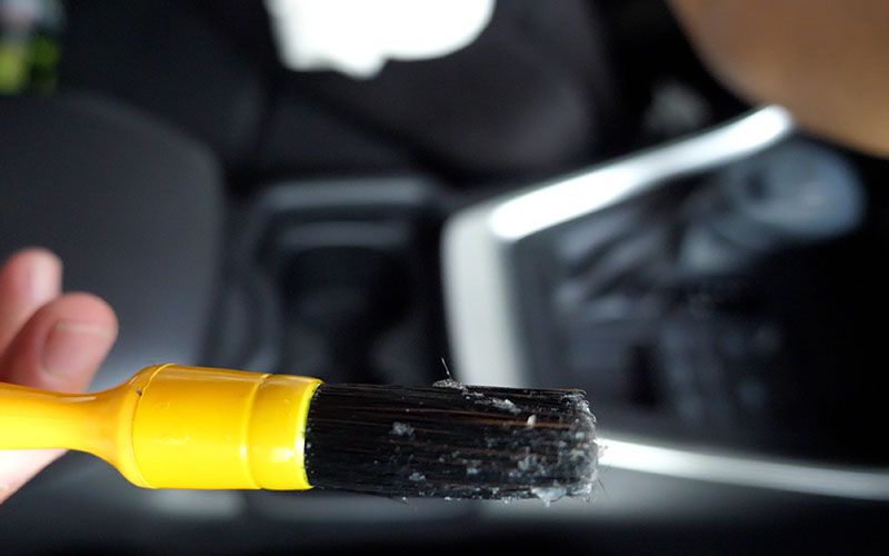 そして樹脂周りやパネル関係は出来るだけ柔らかい筆で掃除していくんですが、マットっぽいところは少し硬めのブラシで掻き出してあげて、掃除機で吸ってあげるのがおすすめです。