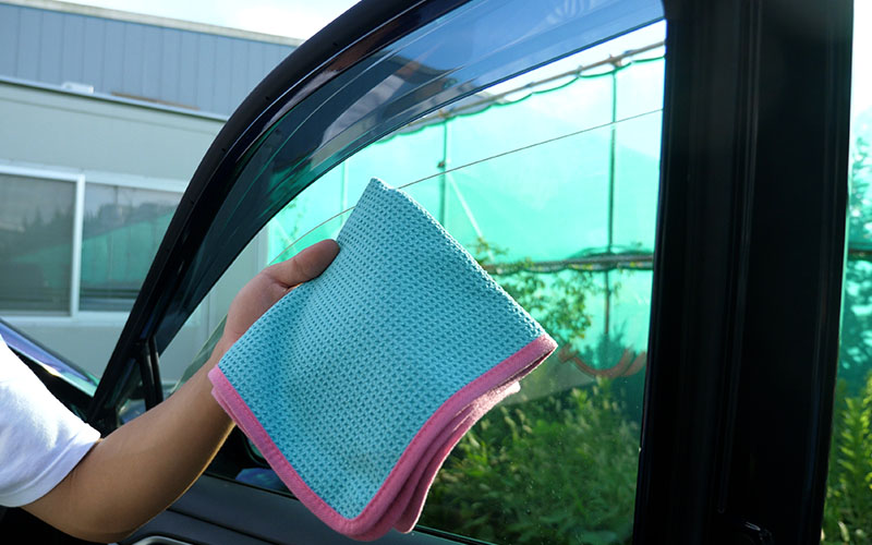 それでタオルは前にも紹介しましたが、ワッフル地のタオルがオススメです。というのもマイクロファイバークロスとかを使うと細かい毛がガラスについちゃったりします。