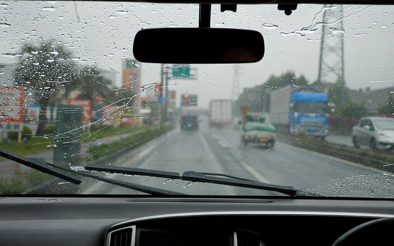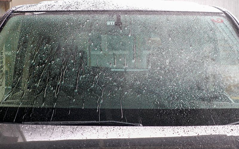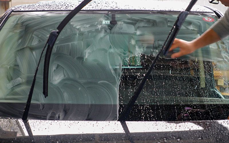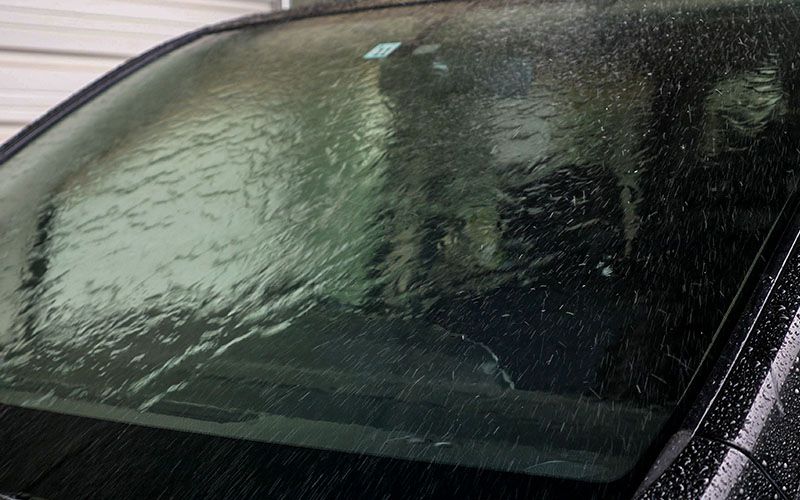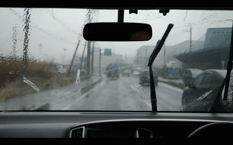 ③液を噴射し、ワイパーを数回動かしてガラス面の汚れを落としてください。撥水コーティングも同時に完了です。