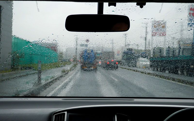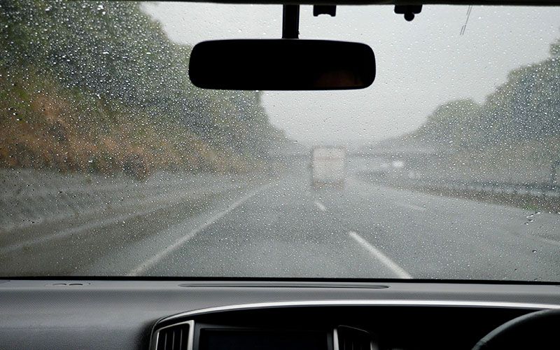 大雨が降っているので、撥水ウォッシャー液はどれくらい効果があるのかを検証していきます。