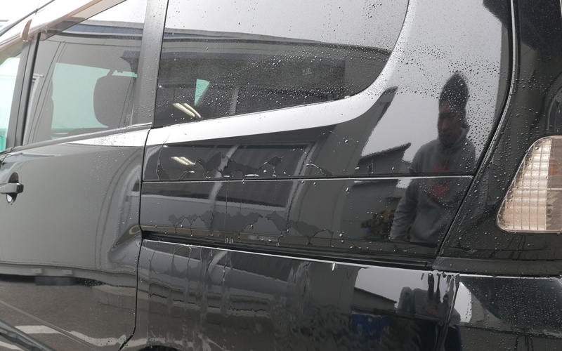 雨ぐらいの水量だと撥水みたいになります。けど、固形ワックスのような弾きはないのでボディに水滴が残ってしまいます。