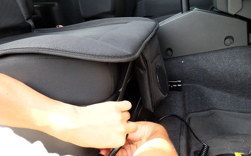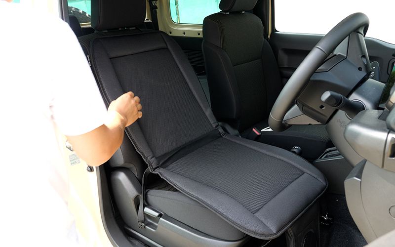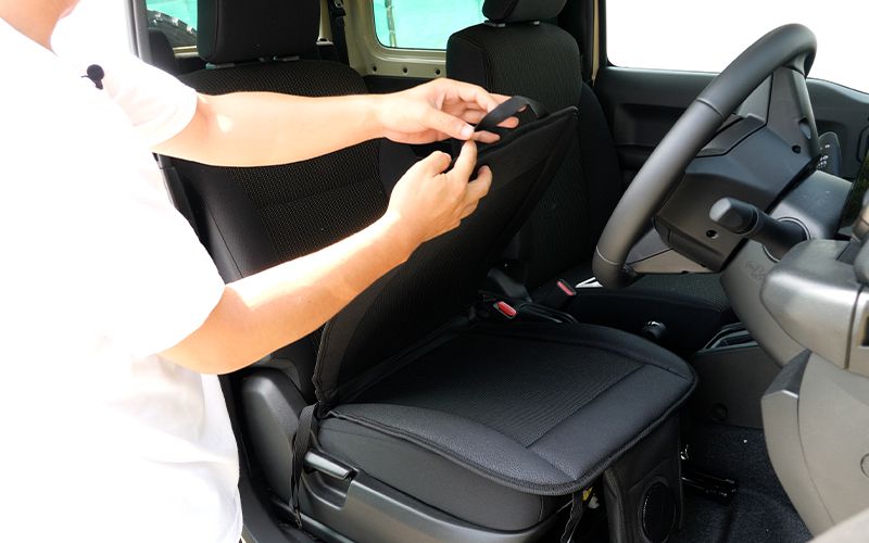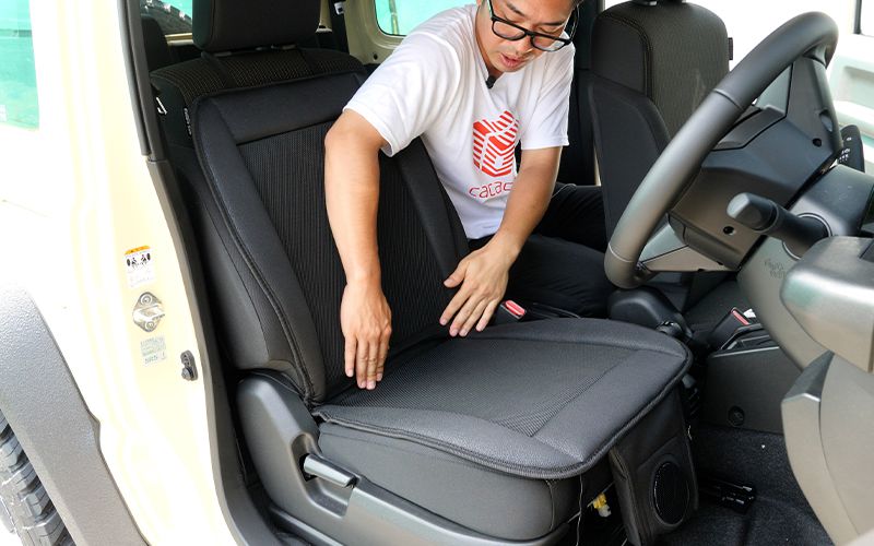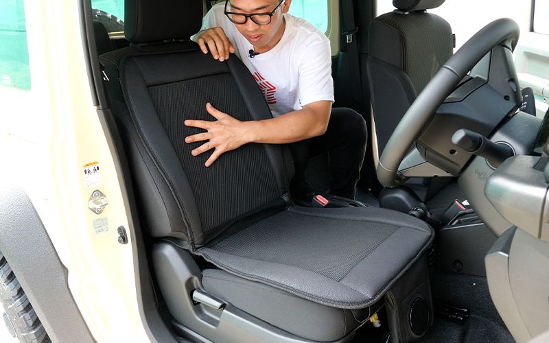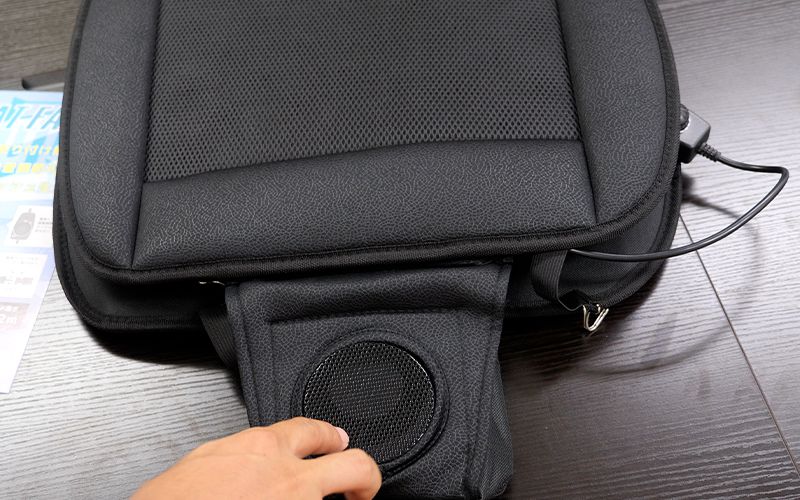 この商品は、座面の下にファンがくるようになるんですが室内の空気を取り込んで風が出てくるようになっているので、そもそも車内が暑いと意味がないというところですね。