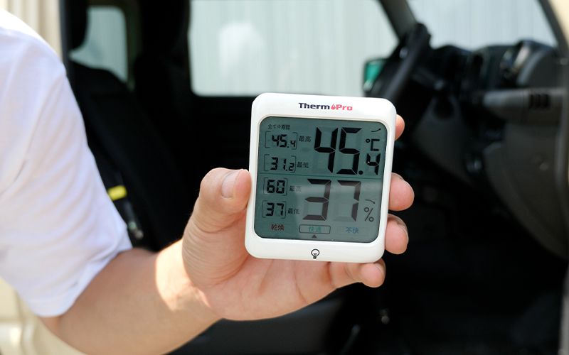 ジムニーシエラに取り付けていきたいと思います。ちなみに車内温度は45℃です。