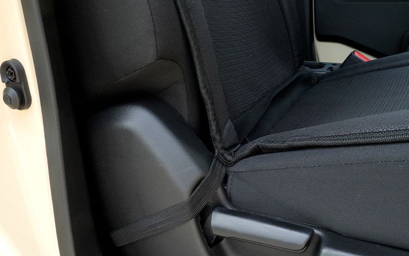 背もたれの上の部分にもゴムが付いているのでヘッドレストのところに引っかけます。