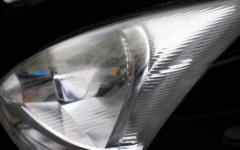 運転席側のヘッドライトです。こちらも曇っていますね。