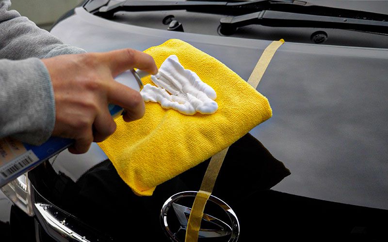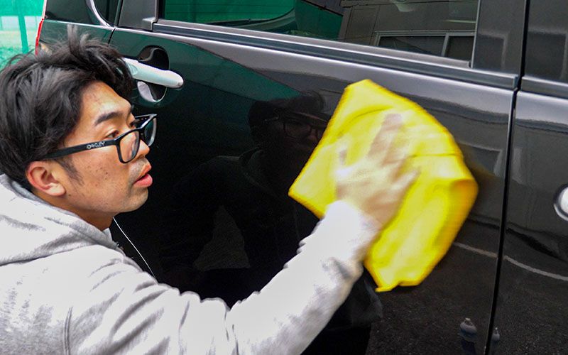 - 表面が乾かないうちに洗車用スポンジ(クロス)で汚れを落とすように拭く