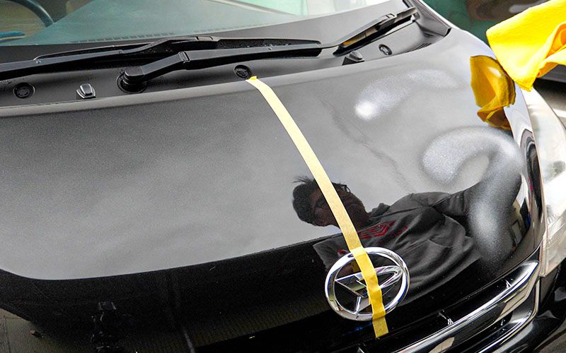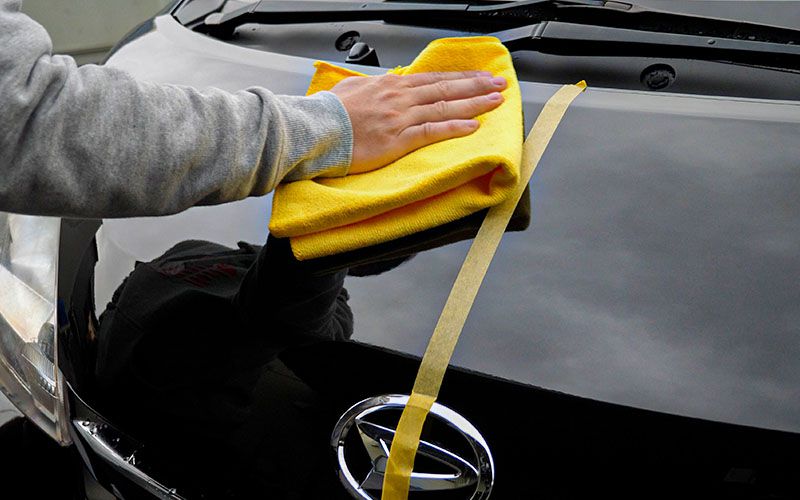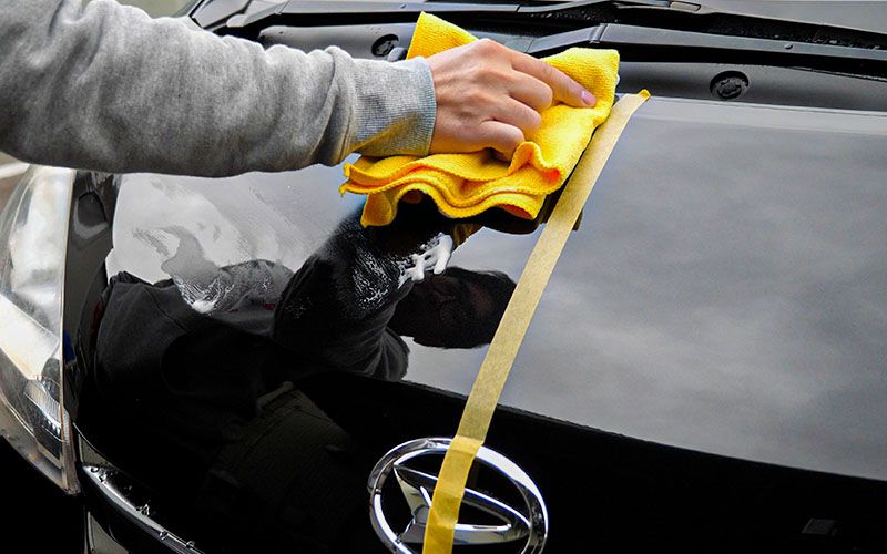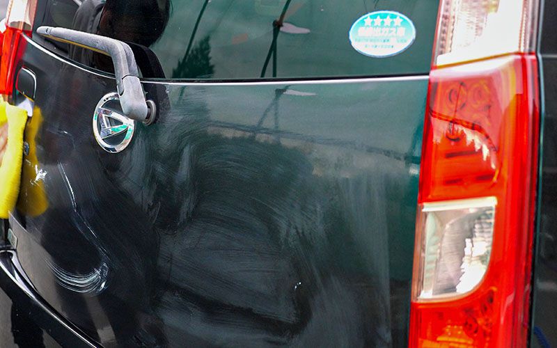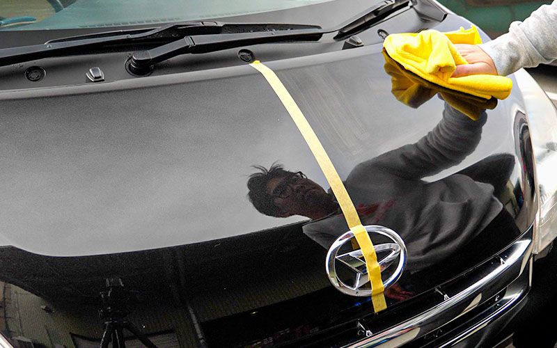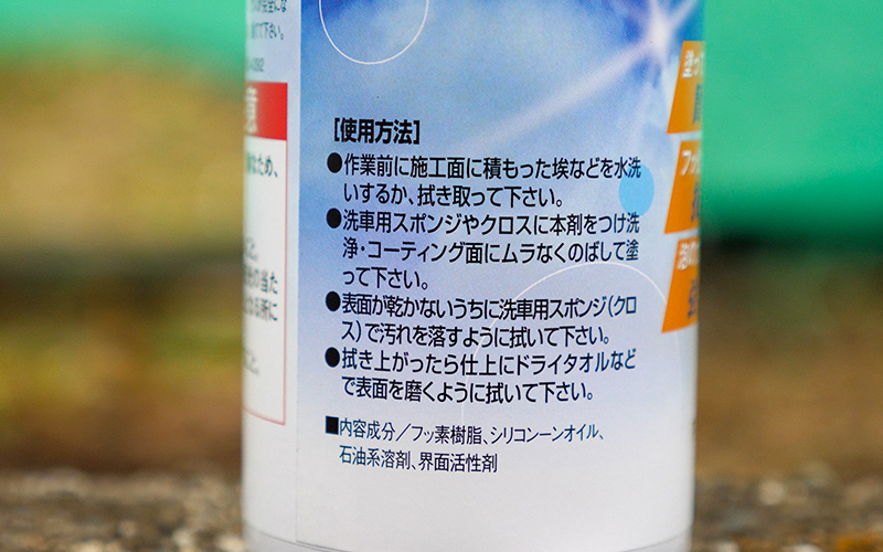- 洗車用スポンジやクロスに本剤をつけ洗浄・コーティング面にムラなくのばして塗る