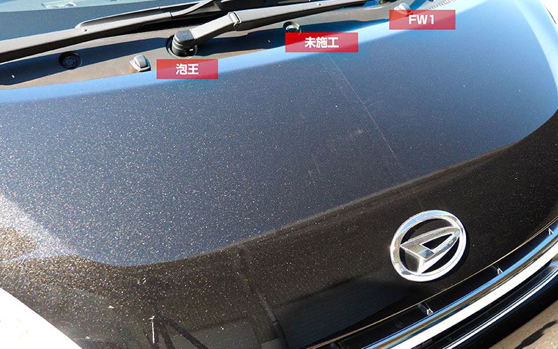 未施工と比べると『FW1』も艶は出ていますが、『泡王』の方が黒っぽい感じで濃いですね。