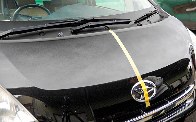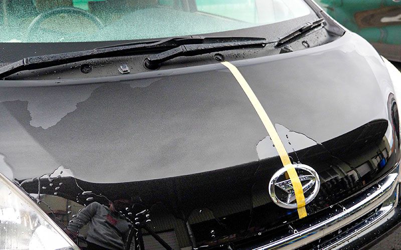 ボンネットは磨いたので現状親水状態です。乾かしたら施工していきます。