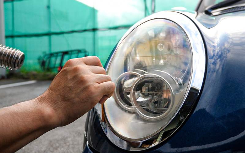 今回の車はそんなに曲面があるヘッドライトではなかったのでこの作業はしていませんが、本当はした方が良いと思います。