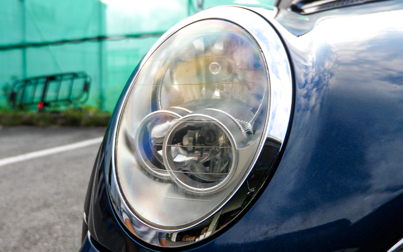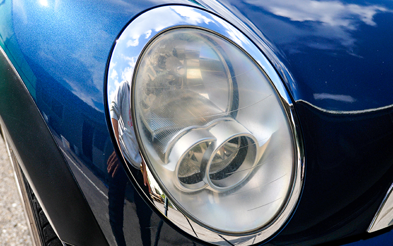 今回フィルムを貼っていく車はBMWのMINIになるんですが、遠目に見ると一見黄ばみや傷は無いようにも見えます。