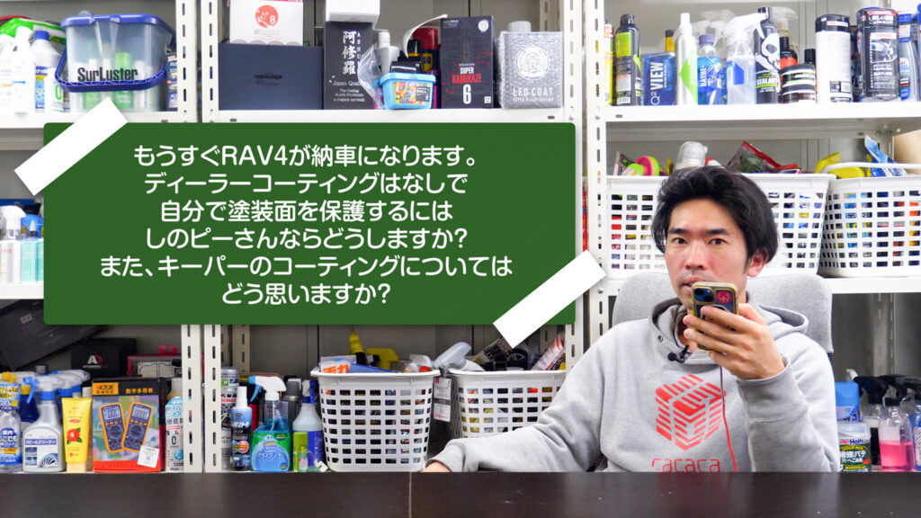 いつも参考にさせてもらっています、質問です。もうすぐラブフォーが納車になります。それで、ディーラーコーティングはなしで自分で塗装面を保護するには、しのピーさんならどうしますか?それと、キーパーのコーティングはどう思いますか?