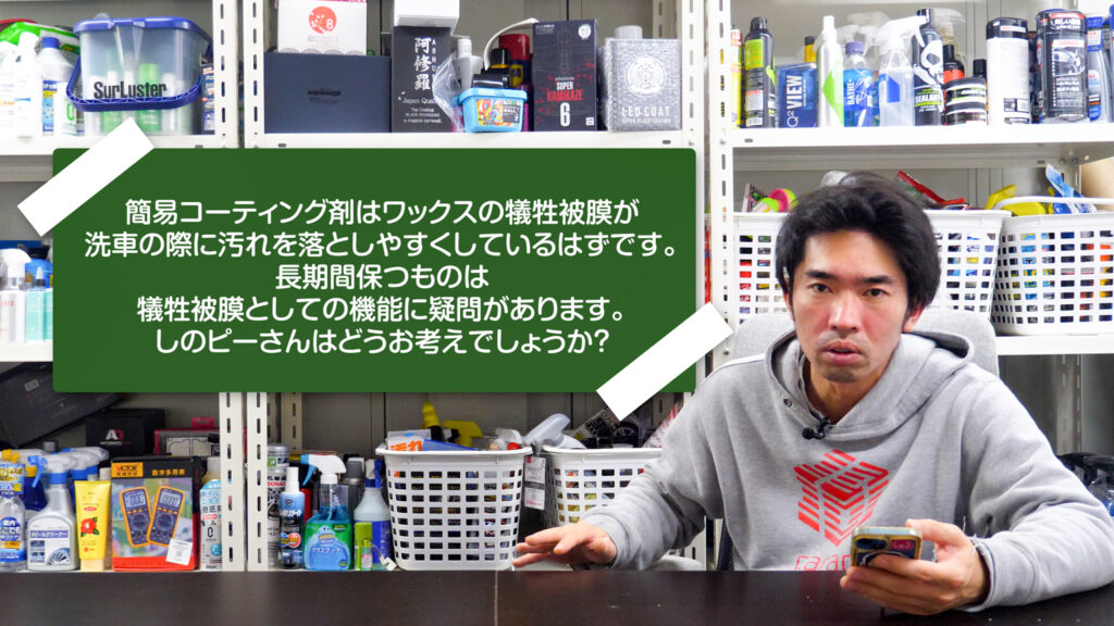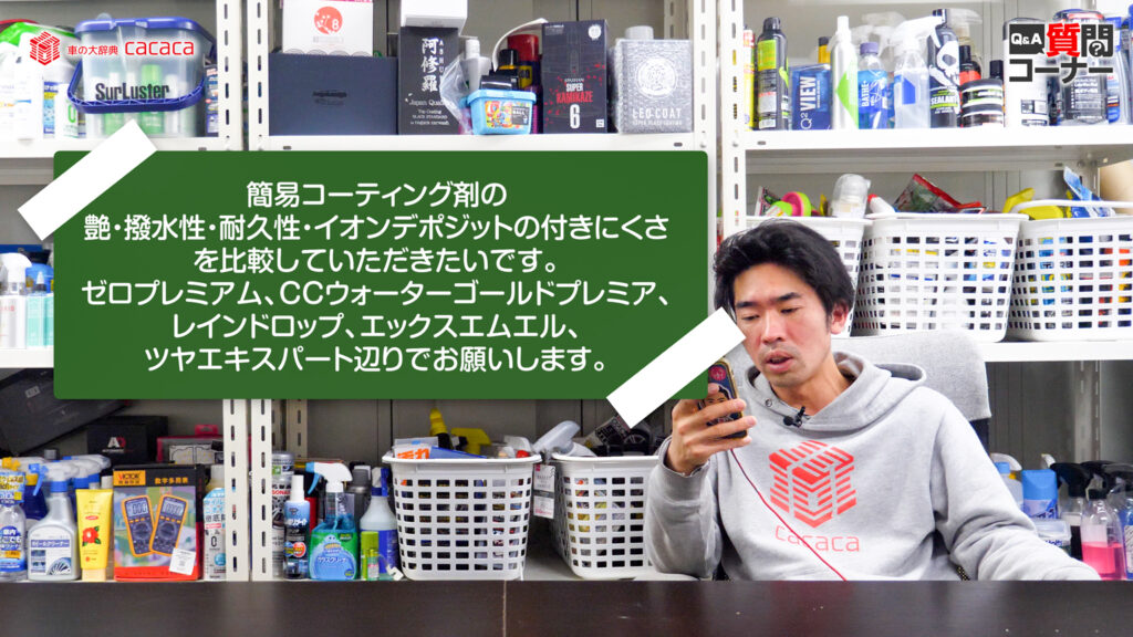しのピーさん、いつも楽しい動画をありがとうございます。私も洗車が大好きなので動画を参考にさせていただいております。さっそくですが、簡易コーティング剤の艶・撥水性・耐久性・イオンデポジットの付きにくさを比較していただきたいです。過去の動画を参考にさせていただき、現在はシュアラスターのゼロプレミアムを使用しています。ゼロプレミアム、CCウォーターゴールドプレミア、レインドロップ、エックスエムエル、ツヤエキスパート辺りでお願いします。これからも応援しています!】