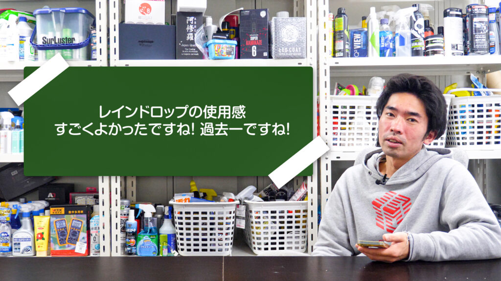 水弾きも良いしガラスにも使えるし施工性っていう部分だったり、効果の部分はかなりレインドロップは優秀だと僕も思っています。