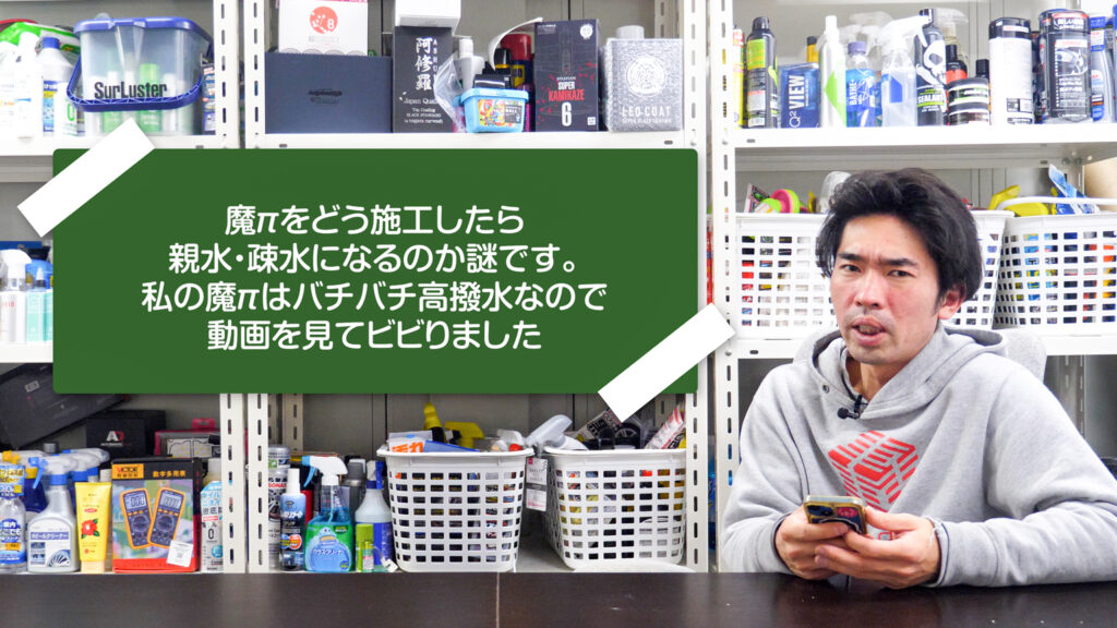 レインドロップを使って魔πに変えたのですが魔πをどう施工したら親水や疎水になるのか謎です。私の魔πはバチバチ高撥水なので動画を見てビビりました