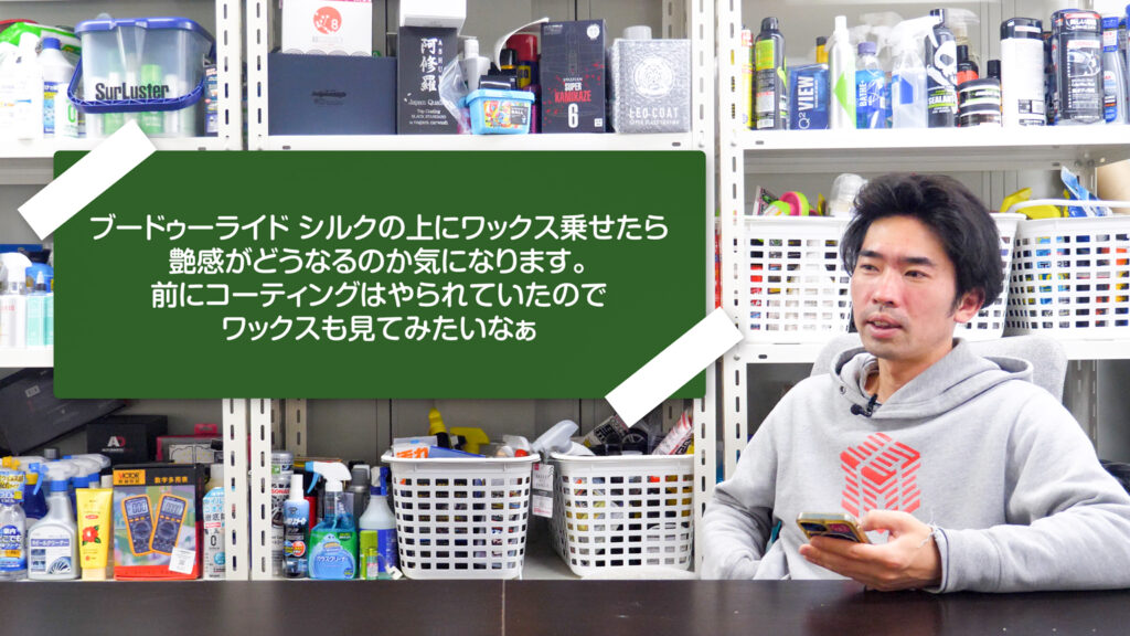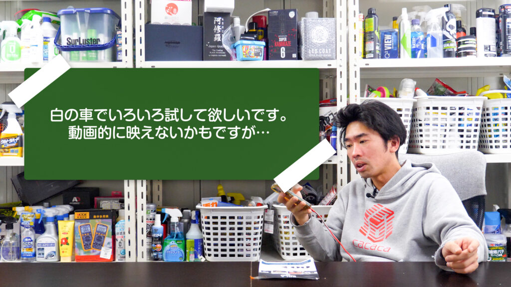 なぜかというと僕は、今までにいろんな商品を施工して「これ艶でてるな」とか「これは艶が出てないな」とかカメラに映しながら僕の感覚を皆さんにお伝えするということはやってきました。