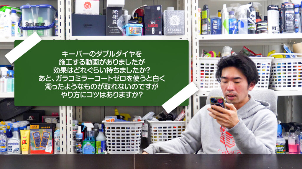 いつもためになる動画をありがとうございます!3年ぐらい前にキーパーのダブルダイヤを施工する動画がありましたが効果はどれぐらい持ちましたか?後、ガラコミラーコートゼロを使うと白く濁ったようなものが取れないのですが、やり方にコツはありますか?