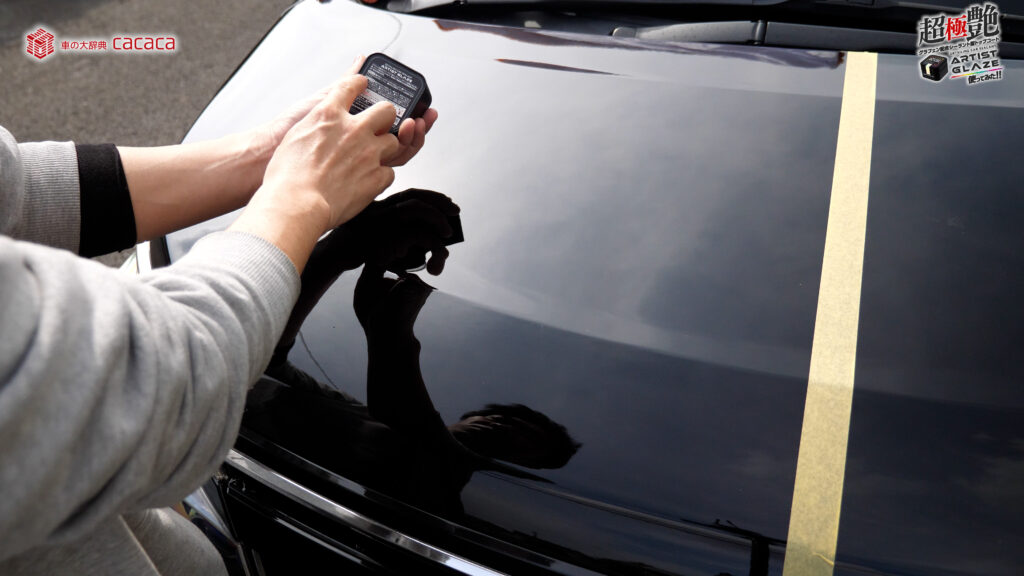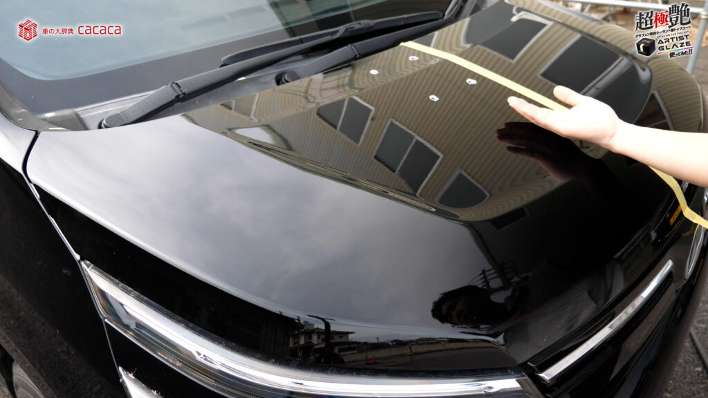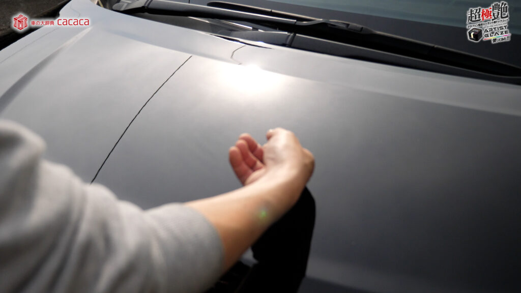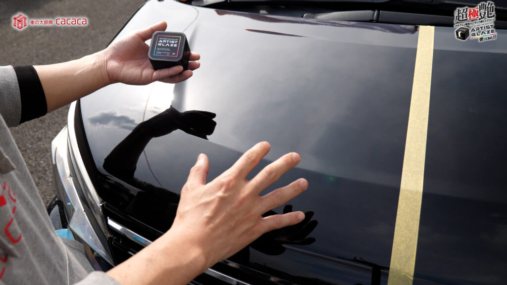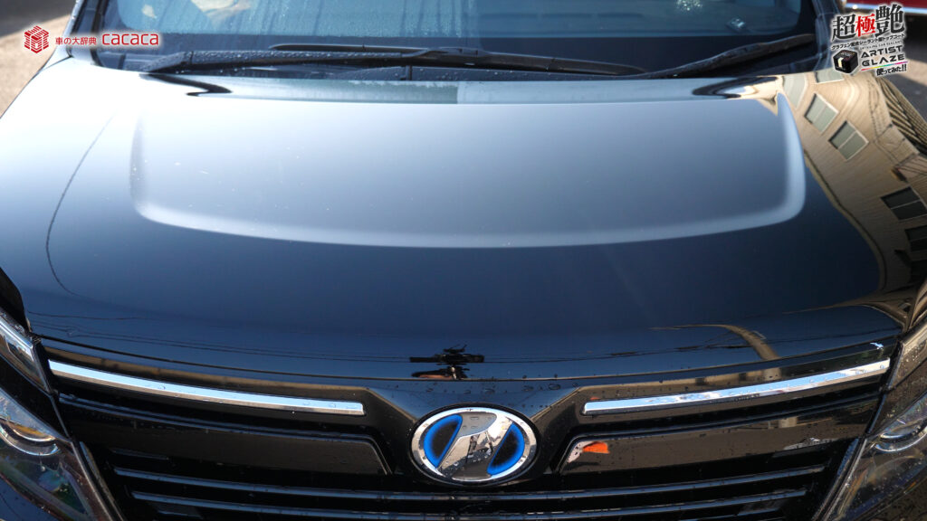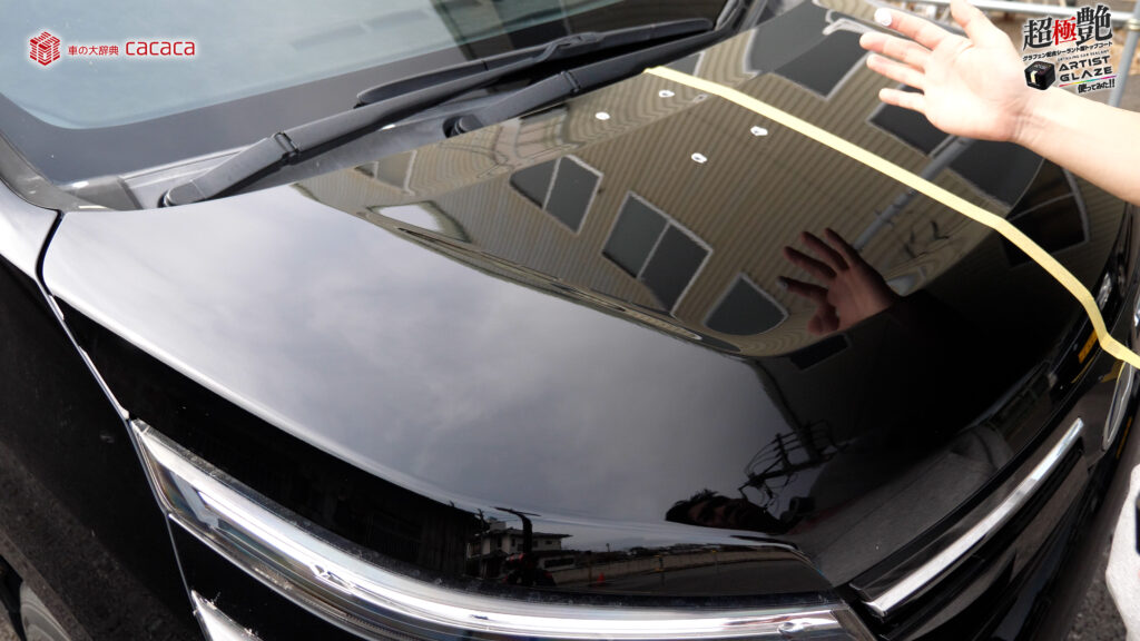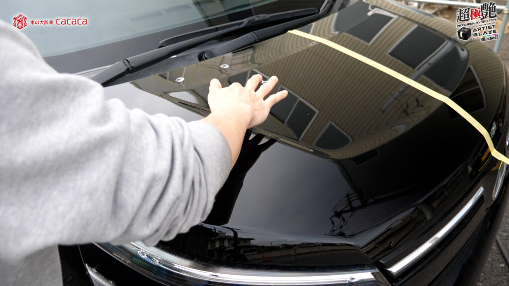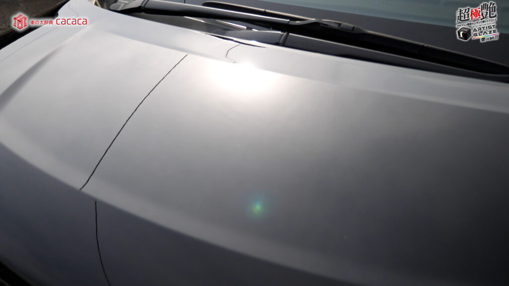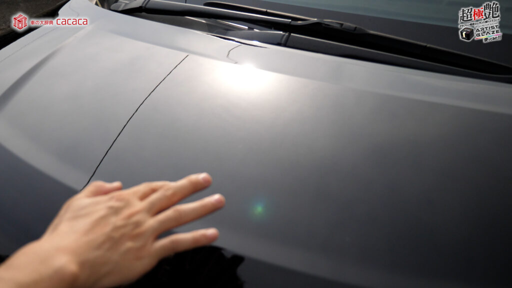 今回はボンネットの左側。運転席側にアーティストグレイズを施工していきます。