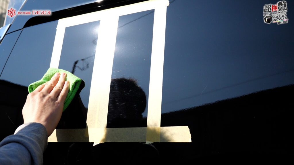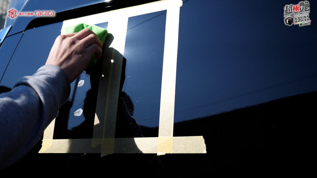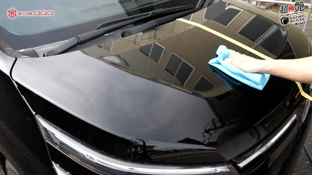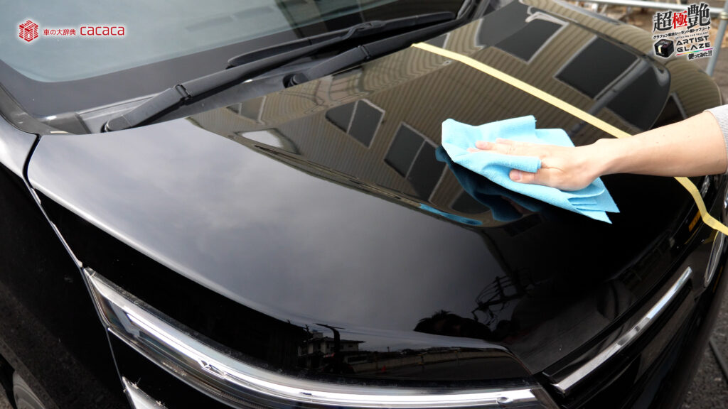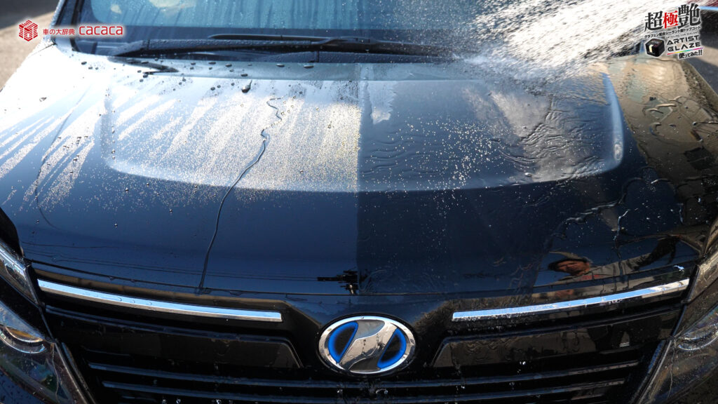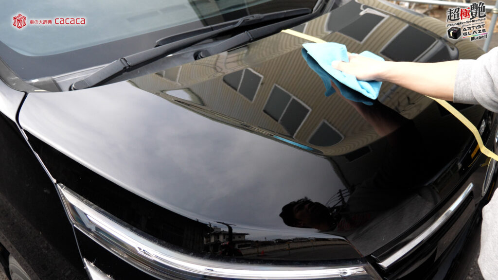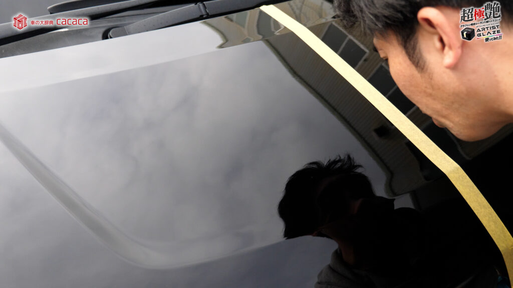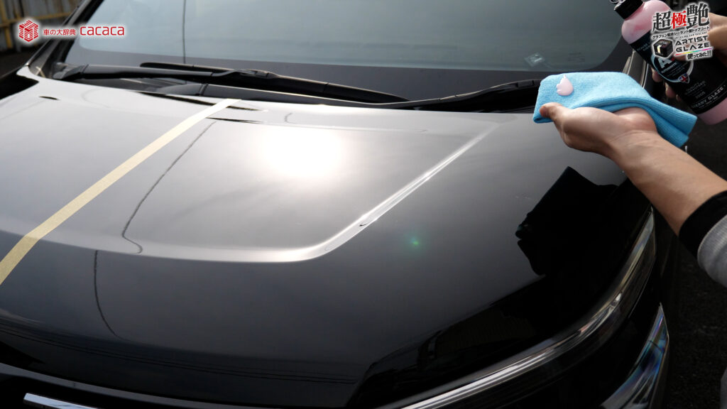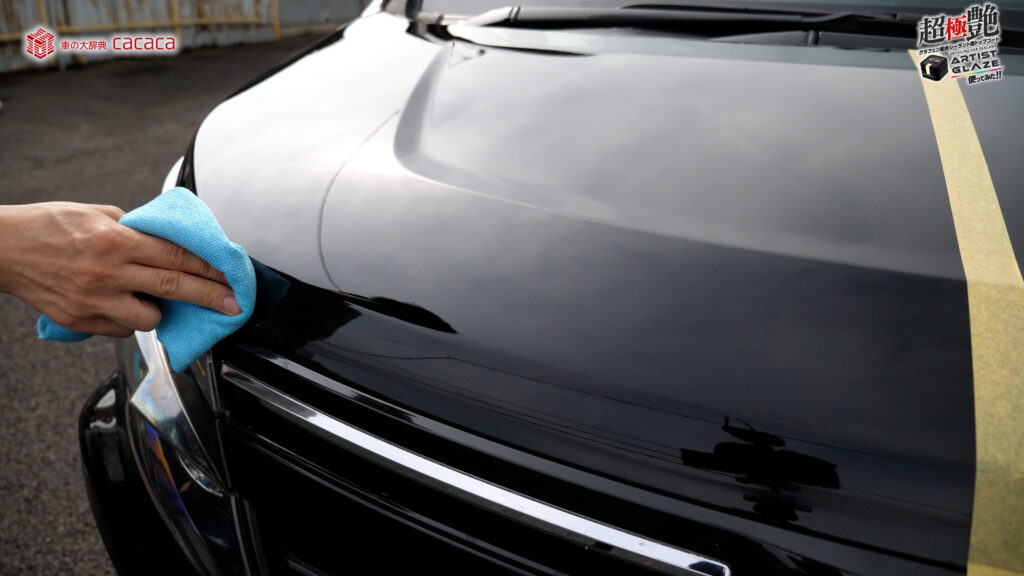 今回はボンネットの左側。運転席側にアーティストグレイズを施工していきます。