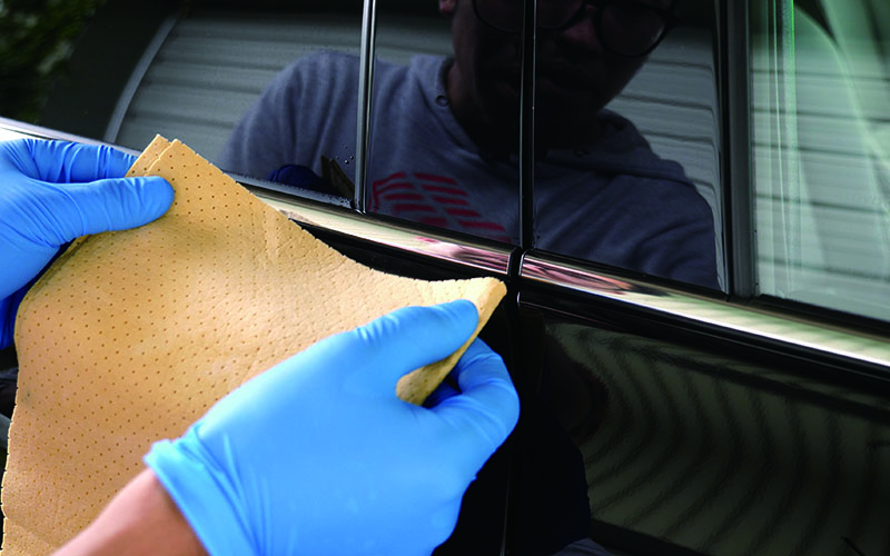 モールの部分はセームがオススメで、僕は『ユニセーム』を使っていきます。拭くのではなく吸います。