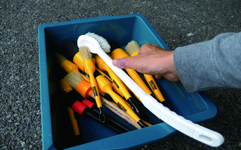 今回は普通のカーシャンプーを使って『EZディティールブラシ ビッグ』で擦ります。これ高いけど使いやすいんですよ…。