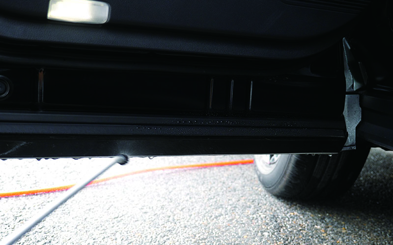 サイドミラー下の部分は鉄板で、どの車種でも水滴が垂れます。