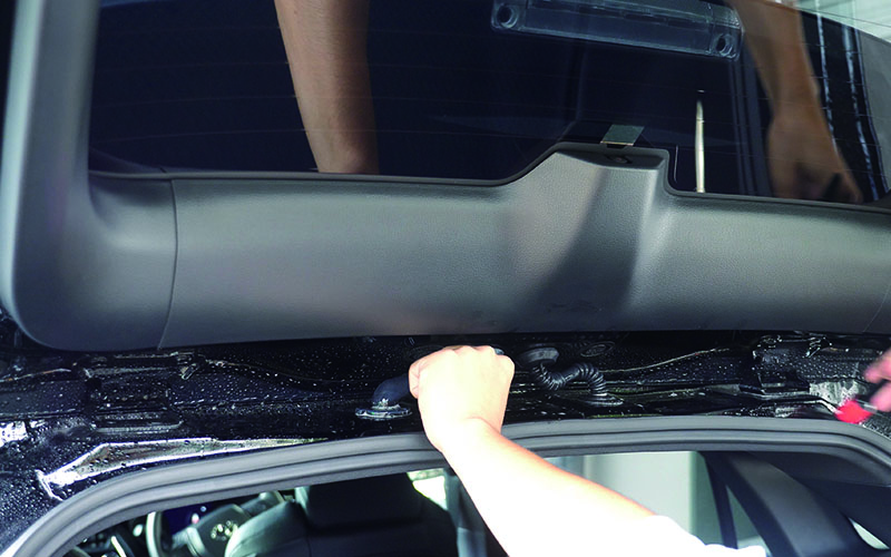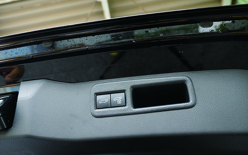 リアハッチを開けた所にも砂埃が溜まっています。これはどの車種でも共通して汚れが溜まるところです。