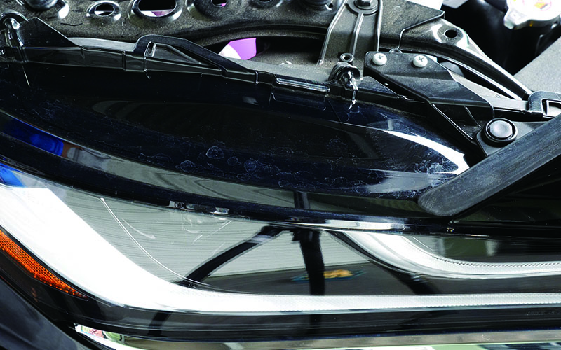 そして1番水アカが酷かったのがヘッドライトの上の部分です。