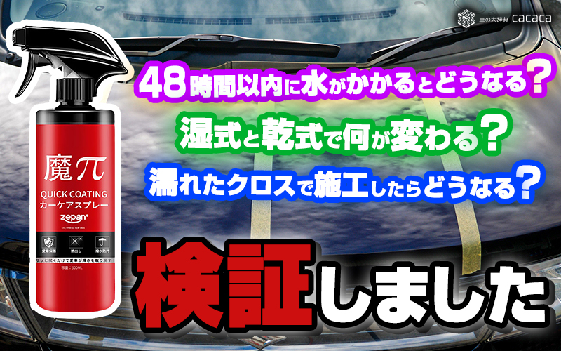 以前にAstreeのコーティング剤『魔π』を施工して水弾きを見た感じ、ガラスは撥水・ホイールは弱撥水・ボディは疎水だったので、疑問に思っていたところ、視聴者さんから「湿式で施工すると変わるんじゃないか」というコメントを頂いたので、今回は色々な方法で『魔π』をボディに施工して水弾きが変わるのか見てみました。