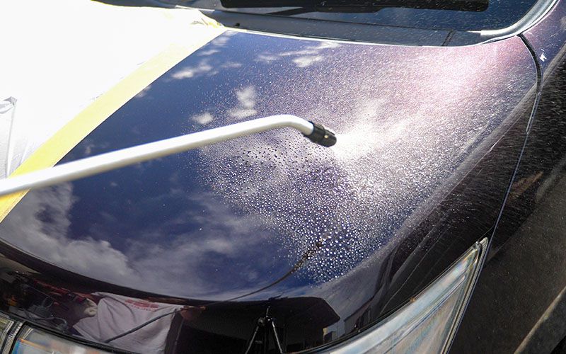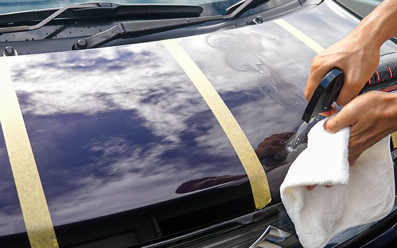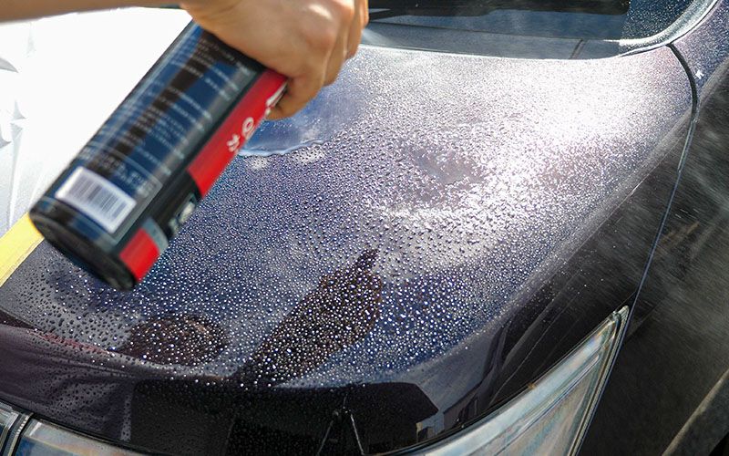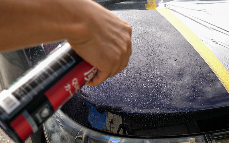 ②ある程度の水気を拭き「クイックコーティング」をスプレーする。車表面が乾燥した状態に戻ってからスプレーすることもできます。