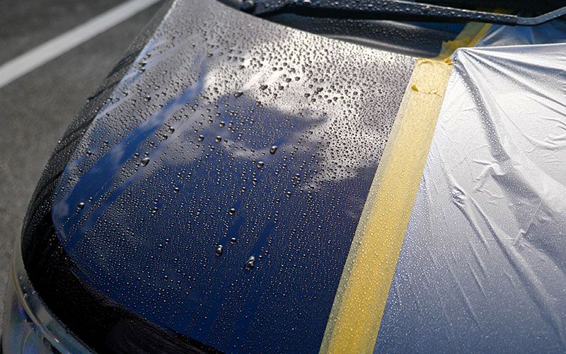 雨を完全再現するならボディに水を残した方が良いんだけど、純水でもシミになって水弾きが上手く見れない可能性もあるので難しい所ですね。