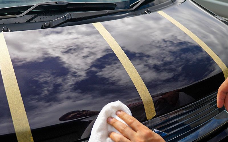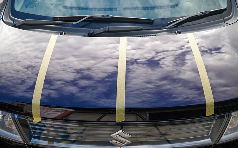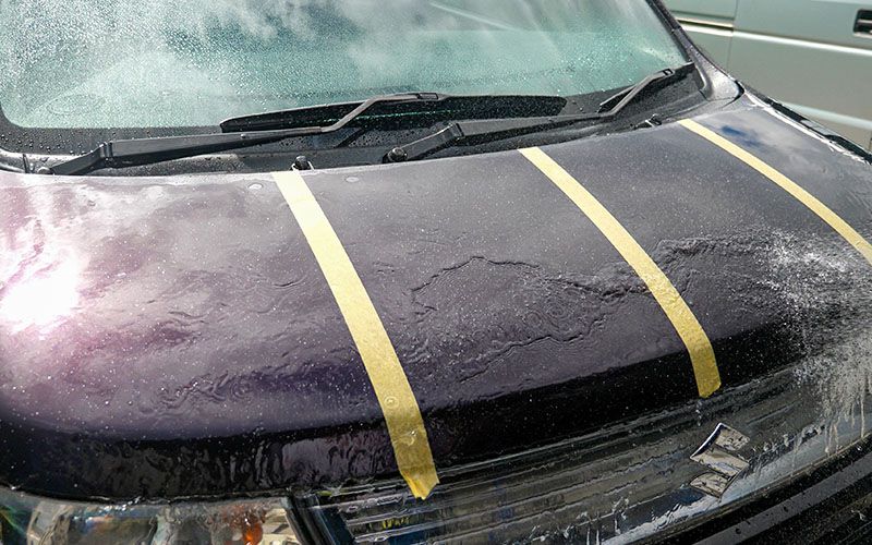 ボンネットをマスキングテープで4等分したので、それぞれ違う施工方法を試していこうと思います。