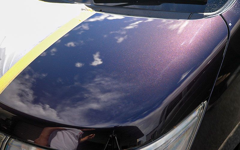今回はこの車に施工していきます。現状はゆっくり水が引いていく感じで、どこも撥水している感じはありません。