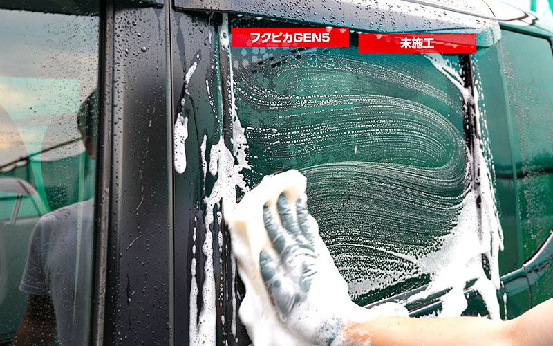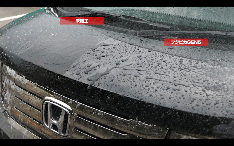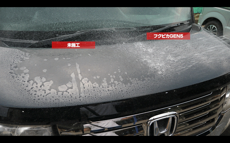 『フクピカ』はボディとガラスの両方に使用でき、拭くだけで汚れ落としと同時に強力な水ハジキ効果を発揮する商品で、Gen5は5世代モデルです。