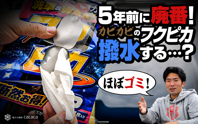 会社の人から5年前に廃盤になったカピカピの『フクピカ』を貰いました。その人曰く、まだ撥水するとのことですが、残り1枚だしほぼゴミですよね…。