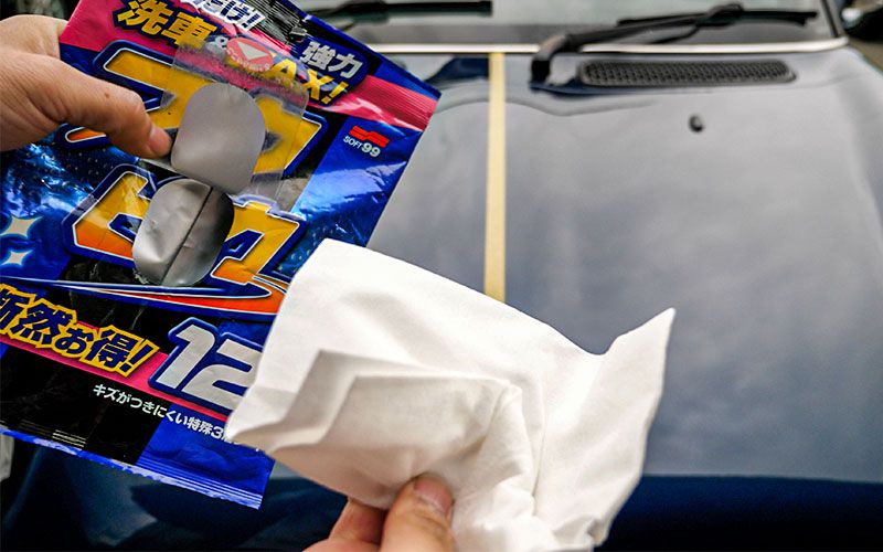 ④ボディの汚れが多い場合は、まず表面の汚れを軽く拭き取り、次にキレイな面に変えて仕上げてください。