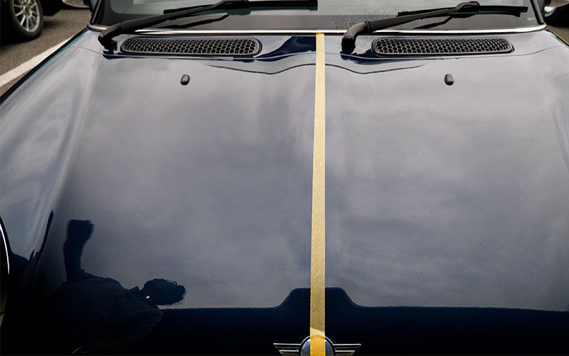 拭き上げたら現行版の『フクピカ』と5年以上前の『フクピカ』を半分ずつ施工します。