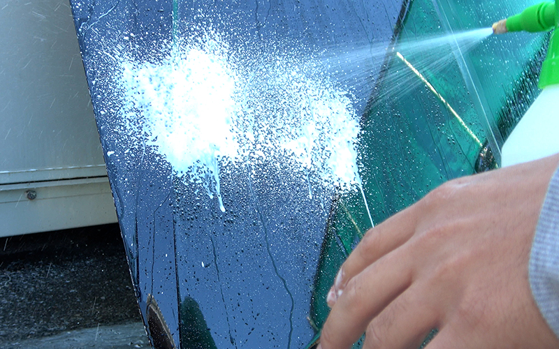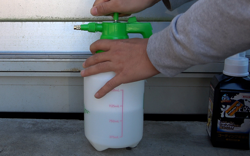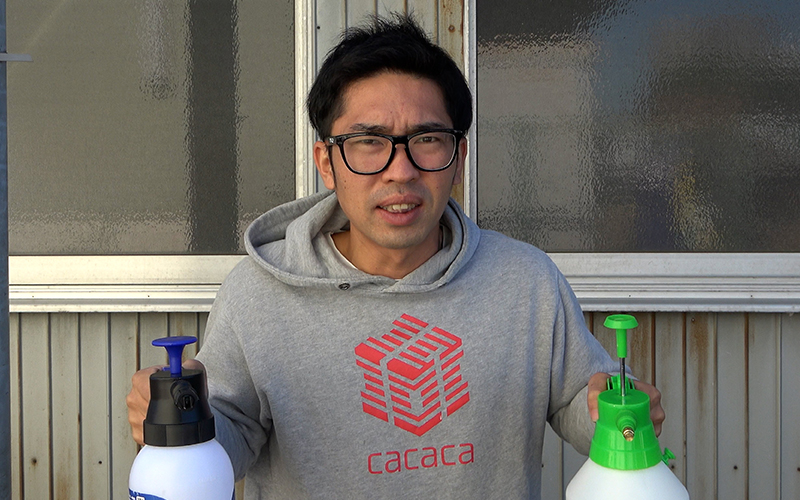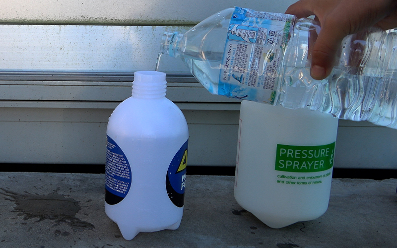 次に、準備ができたので『100均の噴霧器』で吹いていきます。