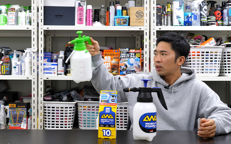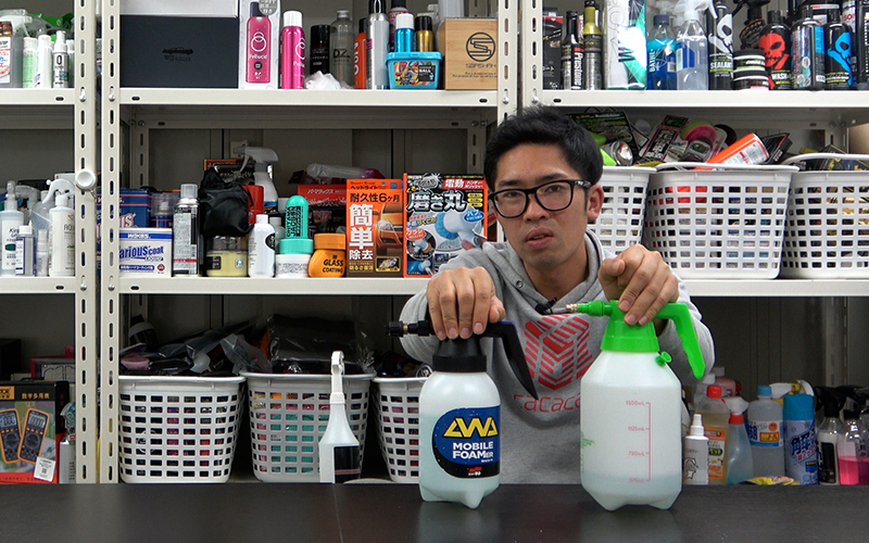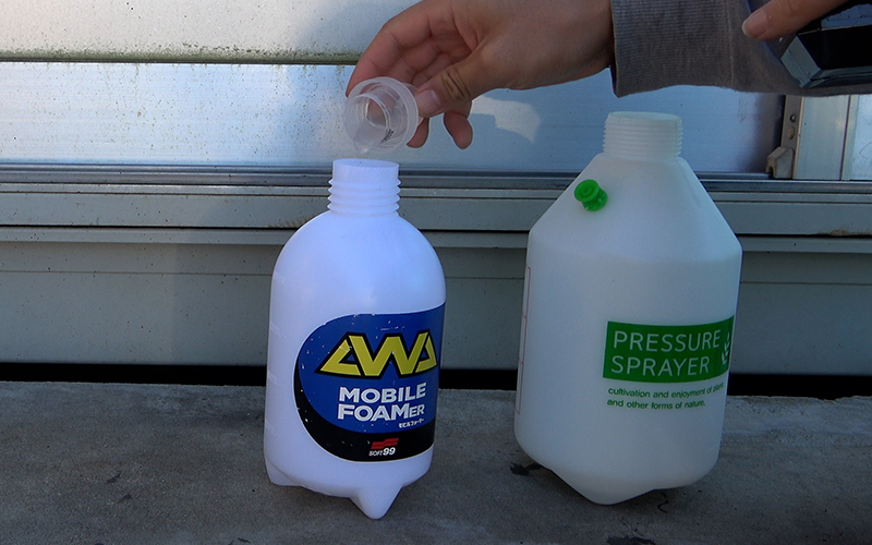 そんなわけで今回は100均で購入した噴霧器とソフト99の『モビルフォーマー』で泡の違いを比較していきたいなと思います。