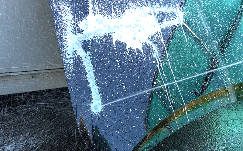 それで、吹いた泡を軽くスポンジで拭くとこういった感じになります。結構な泡々具合なので良いんじゃないかなと思いました。
