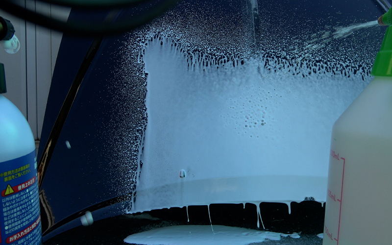 最後に、ソフト99の『モビルフォーマー』専用の濃縮シャンプー『パーフェクトフォームシャンプー』をどちらにも入れて何か変化があるのか、泡の質が良くなるのかなどを見ていきたいと思います。