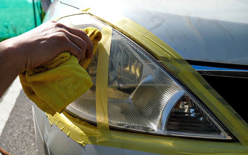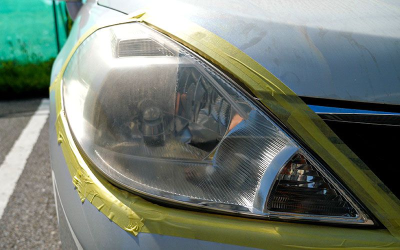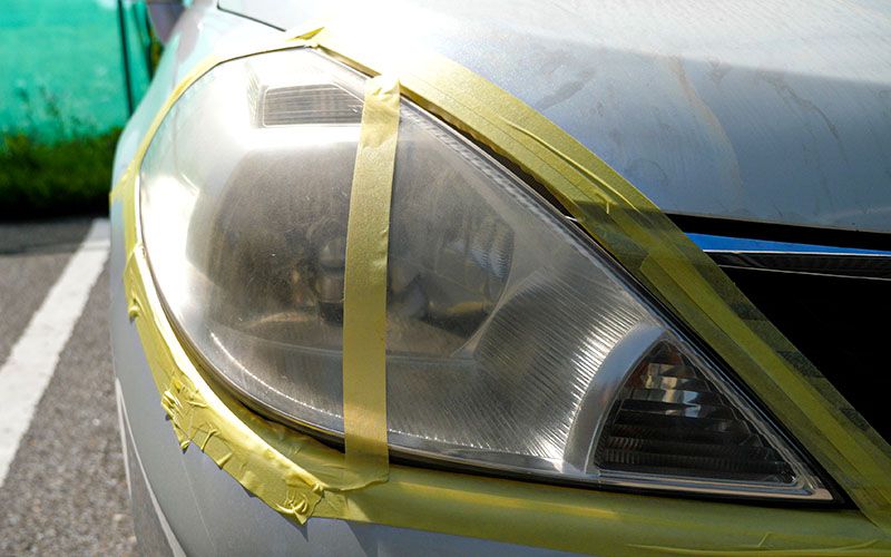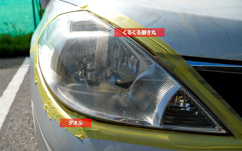 ヘッドライトは道具を使わなくても十分綺麗になる場合が多いので、タオルで拭いてみます。