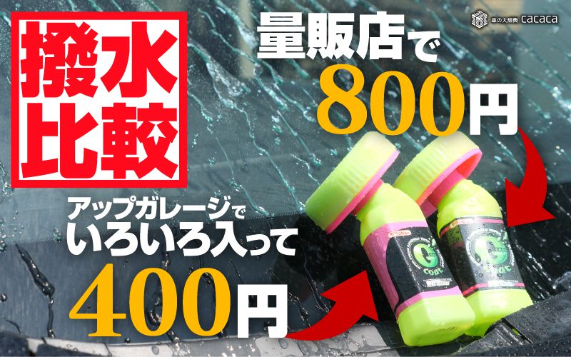 今回は、アップガレージで約400円で購入することができる『視界MAXセット 撥水タイプ』というセット商品の中に入っていた『ハイブリッドストロング』と、量販店やネット通販などで700~800円で購入することができる『ハイブリッドストロング』をフロントガラスに半分ずつ施工して比較してみました。