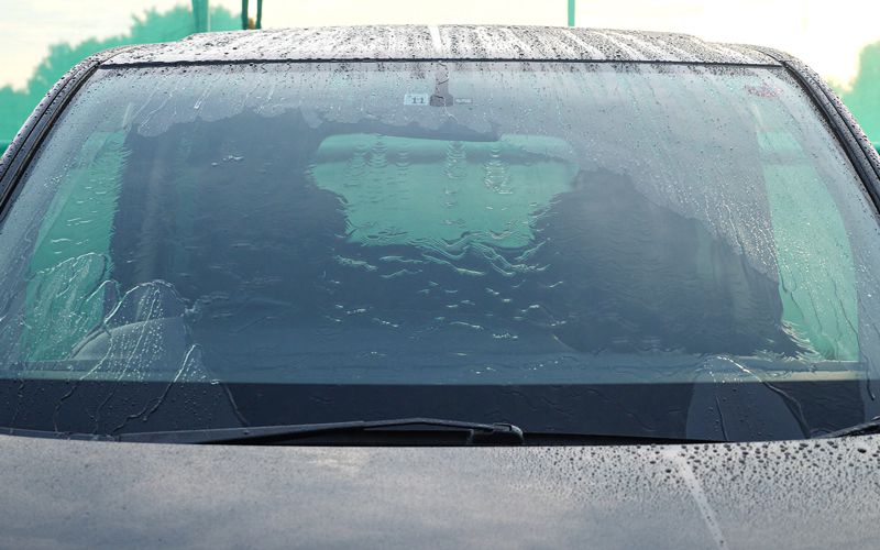 左側の画像は、さっきとは反対側の角度から水をかけた時の様子。右側の画像は、正面から水をかけている状態を車内から見た時の様子。