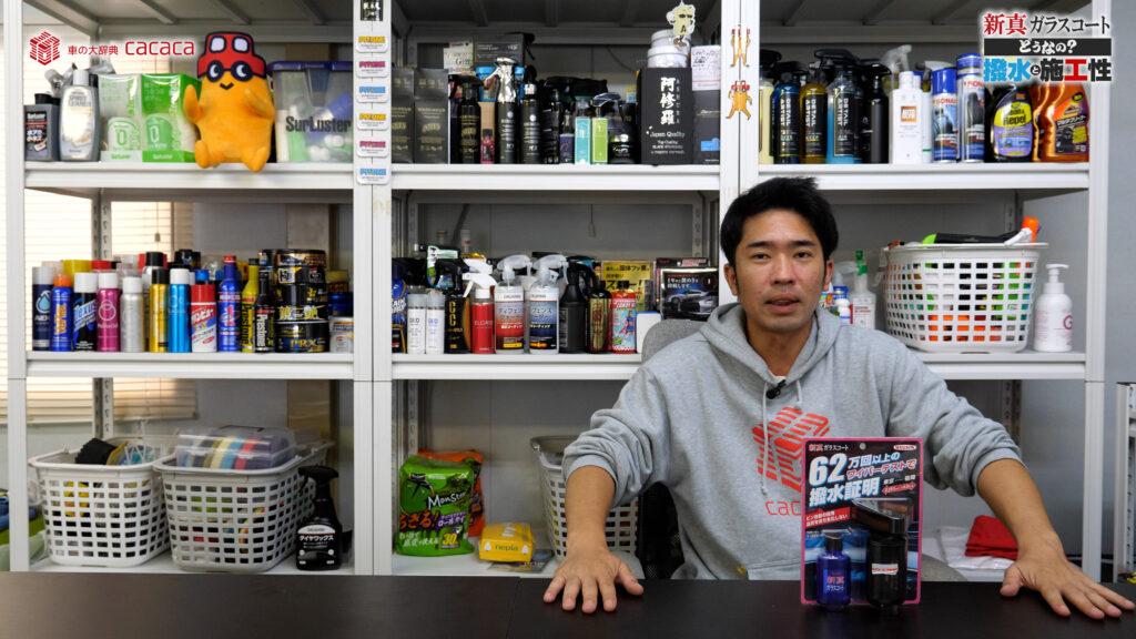特徴としては パッケージ表面にも書いてあるんですけど、62万回以上のワイパーテストで撥水証明。