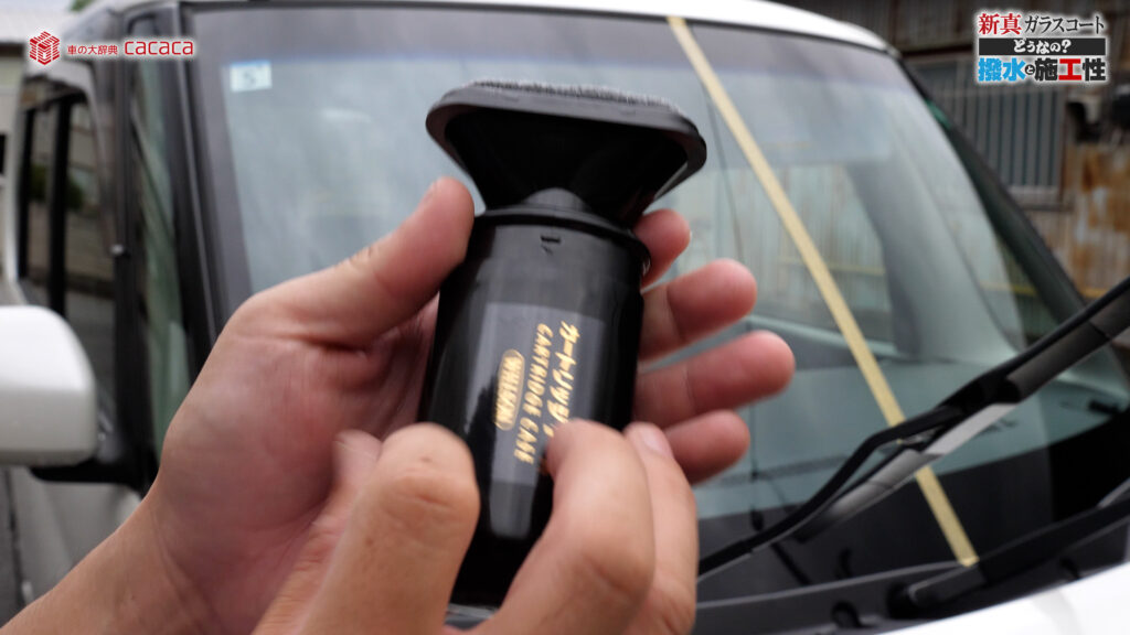 他のガラス用撥水剤と違うところは、カートリッジ式になっていて、これを交換することができるというところ。