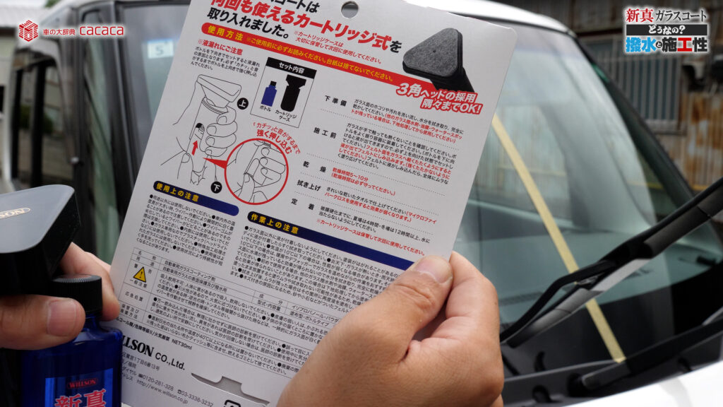今回はこちらウィルソンの新真ガラスコートという、高耐久のガラス用撥水剤を使ってみました。