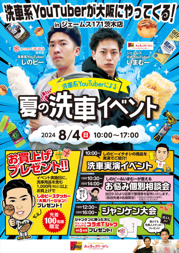 2024年8月4日 (日) に車の大辞典cacaca初、大阪で洗車イベントが実際されます。