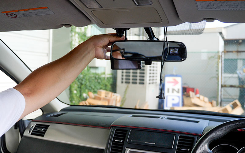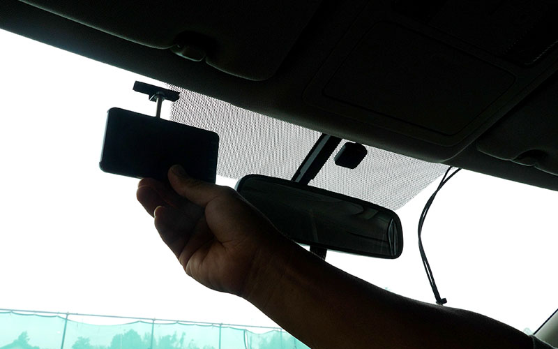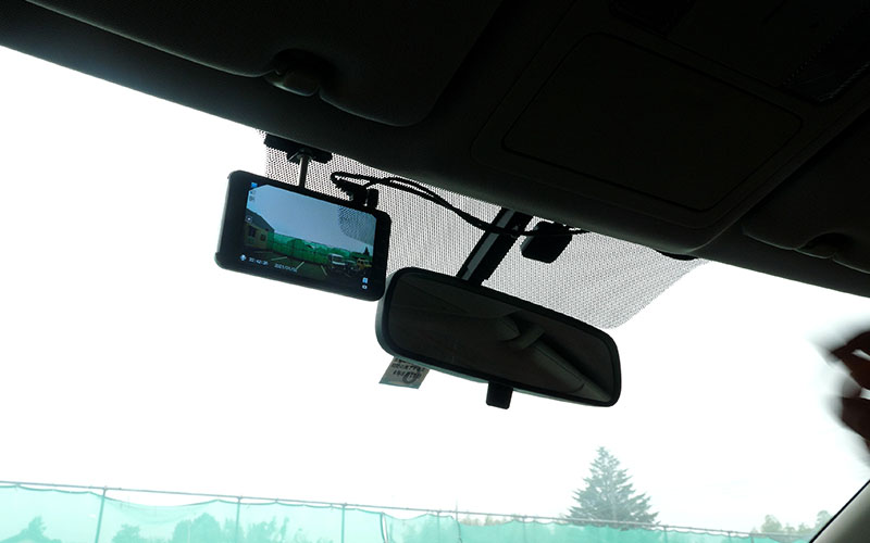 助手席側に付けるとこんな感じです。ルームミラーからはみ出ているのも嫌だし、やっぱり20%超えているよね。